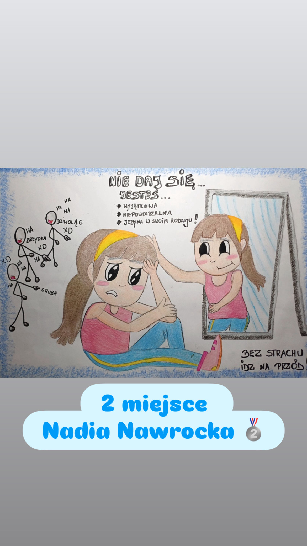 Zdjęcie 2: praca Nadii Nawrockiej – praca przedstawiająca rolę samoakceptacji i wspierających myśli