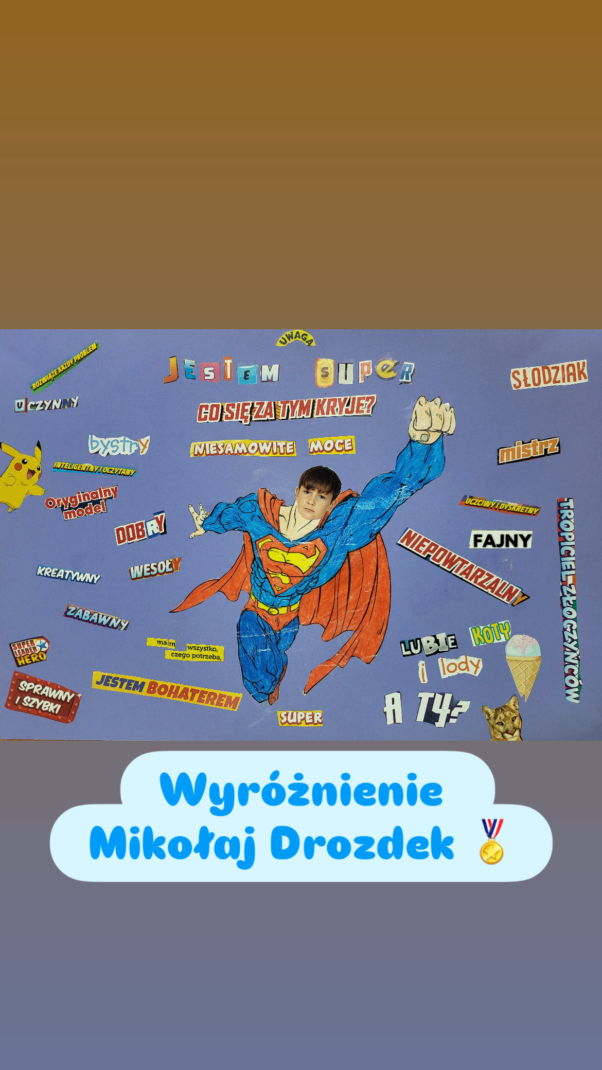 Zdjęcie 6: praca Mikołaja Drozdka: kolaż gazetowy wskazujący, że każdy ma w sobie super moce jeśli myśli o sobie dobrze